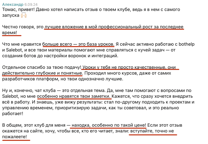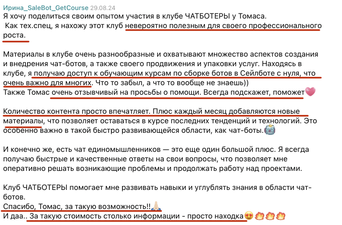 В других курсах я не получил достаточно знаний по инструменту - сценарии. Мне пришлось на практике разбираться самому, с каждым блоком и строить воронки для решения задач клиентов.