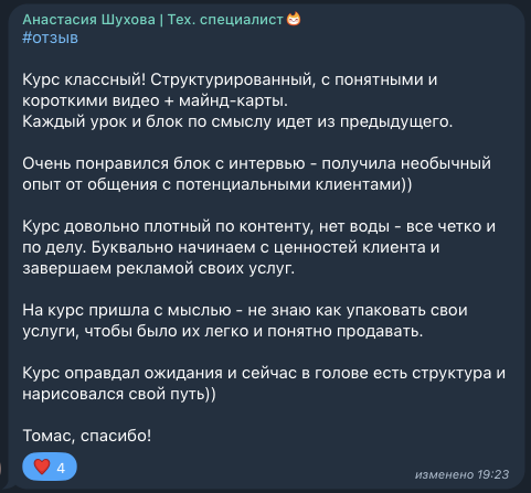 Каждое задание я буду проверять лично, давать вам обратную связь и помощь, если возникнут какие-то вопросы по обучению, платформе и т.д.