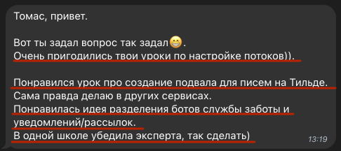 У вас будет большой модуль с погружением в автоматизацию, где я не только научу вас работать с конструктором сценариев, но и дам множество шаблонов для уменьшения рутины в работе и упрощении администрирования школы.