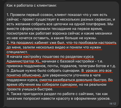 Дополнительная прокачка ваших навыков, разбор тонкостей и нюансов при работе с платформой и клиентами.