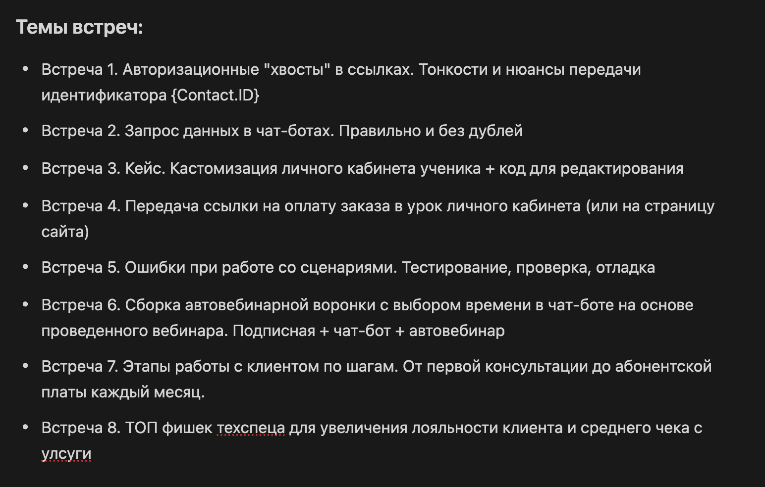 - Встреча 7. Этапы работы с клиентом по шагам. От первой консультации до абонентской платы каждый месяц.